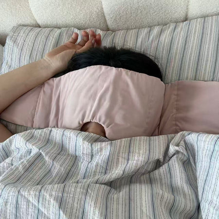 The mask weighs 250g (9 ounces), filled with gravity plastic beads that are carefully balanced—not too light, not too heavy—just the right weight for calming comfort.